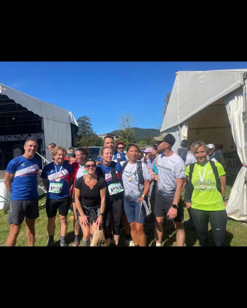Fierté du club cette année : la participation de 3 joëlettes, poussées en relais par nos coureurs tout au long du parcours. Une vraie aventure humaine, sportive et collective, portée par l’énergie du groupe et les sourires de nos passagers, Sabine, Noé et Hichem. Mention spéciale pour Noé qui participait à sa première course en joëlette @tous_.avec_.noe